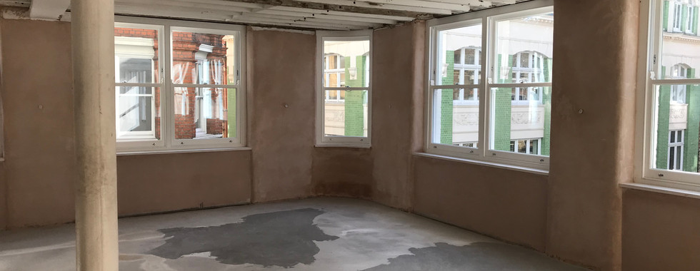 Asbestos testing and removal to allow the works to progress safely. Structural and foundation works within the basement followed by a full tanking system. Replacement of all sash windows, doors & shop fronts with new hardwood frames and various glazing, new fire rated partitioning and doors to main staircase and all finished with a skim coat of plaster.